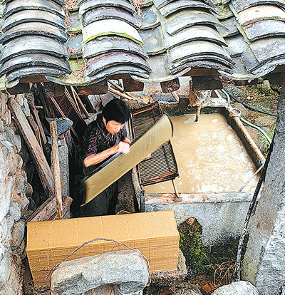 一名村民正在制作泽雅屏纸。 本文配图均由作者提供